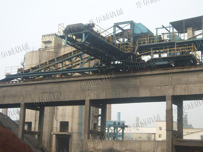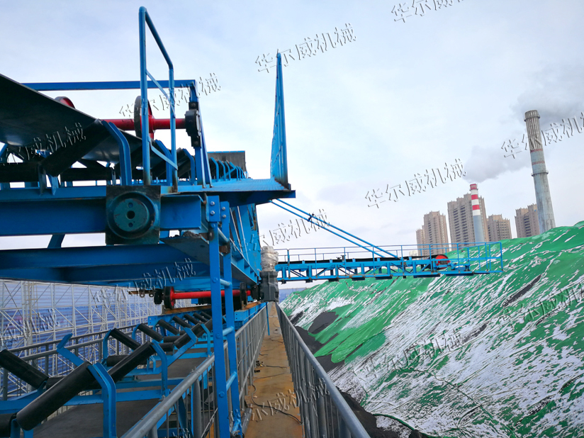 懸臂堆料機(jī)下有若干組行走輪,驅(qū)動(dòng)裝置與行走輪相連,以帶動(dòng)懸臂堆料機(jī)在帶式輸送機(jī)兩側(cè)的行走軌道上行走,實(shí)現(xiàn)移動(dòng)或定點(diǎn)卸料。